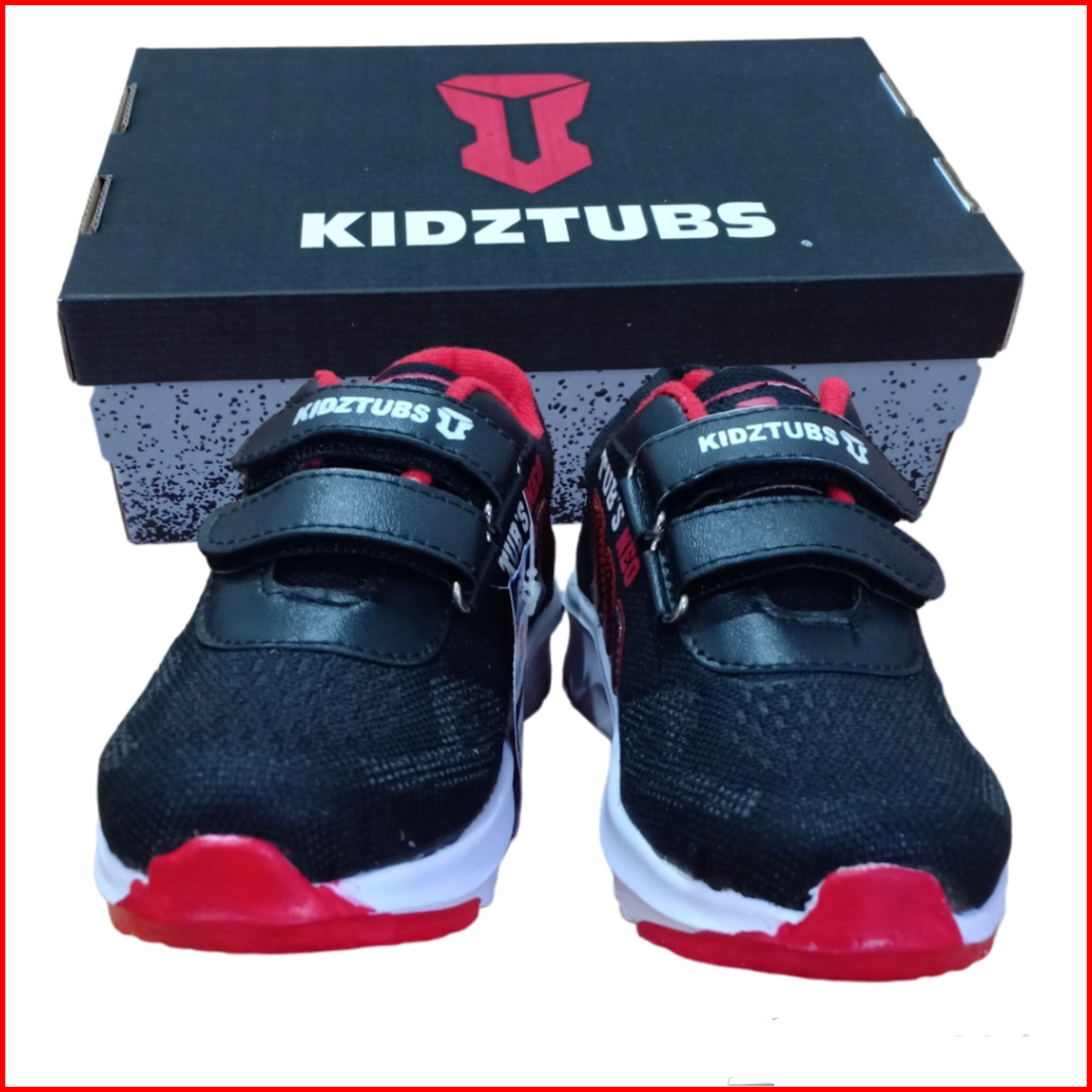 Kidztubs Sepatu Sekolah Anak Laki Laki Perempuan Warna Hitam Perekat Rekat Usia 6 -10 Tahun-kdz2047