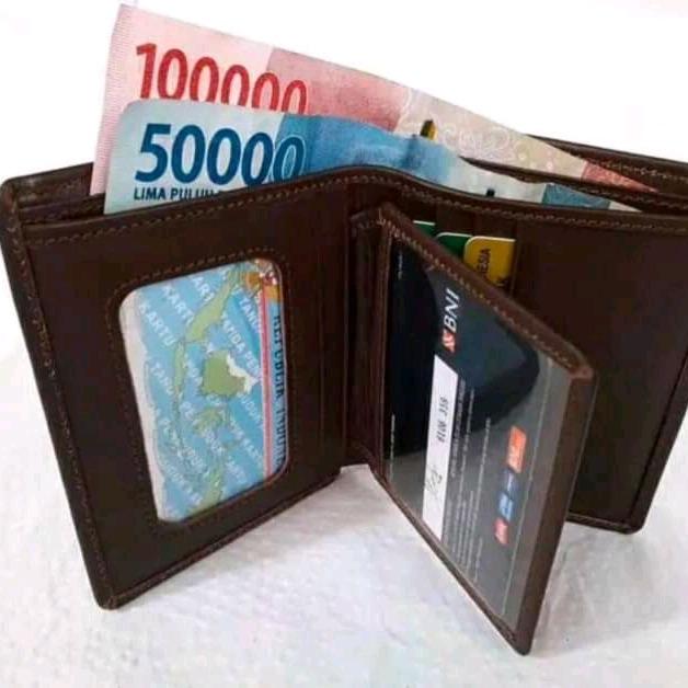 PALING DICARI ! DOMPET KULIT MODEL LIPAT BUKU 100% ORIGINAL KULIT ASLI - HITAM TERMURAH