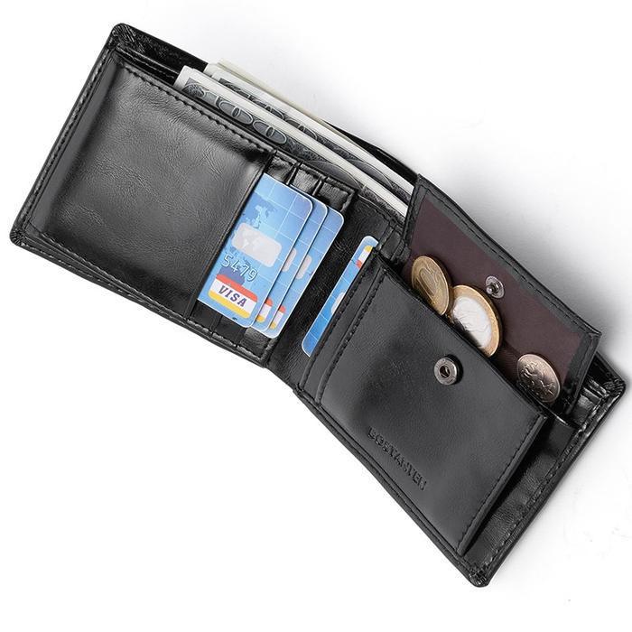 PALING DICARI ! BOSTANTEN DOMPET PRIA KOIN RITSLETING KULIT PU TIGA KALI LIPAT HITAM/COKLAT/KOPI - HITAM + BOX TERMURAH
