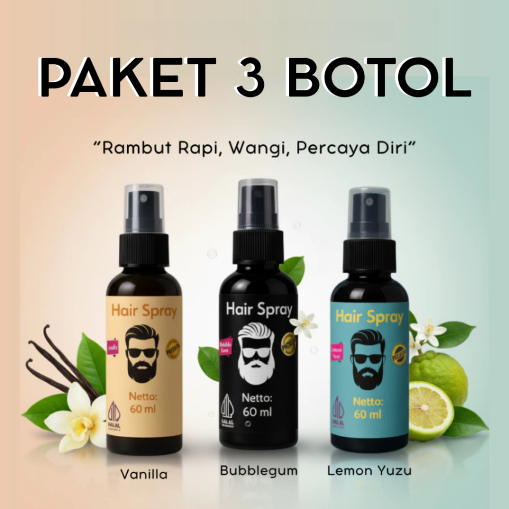 [ PAKET 3 BOTOL ] - Hair Spray Styling – Untuk Gaya Rambut yang Awet & Natural - Isi 50ml - Bayar di Tempat