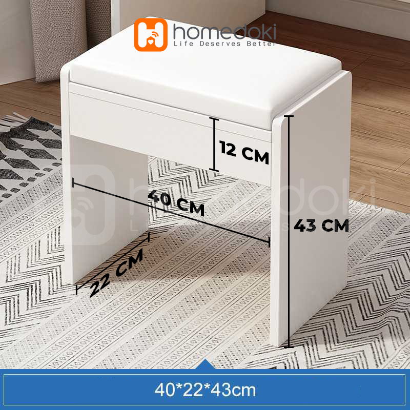Homedoki Bangku Rias / Bangku Putih / Makeup Stool / Bangku Samping Tempat Tidur / Kursi Piano