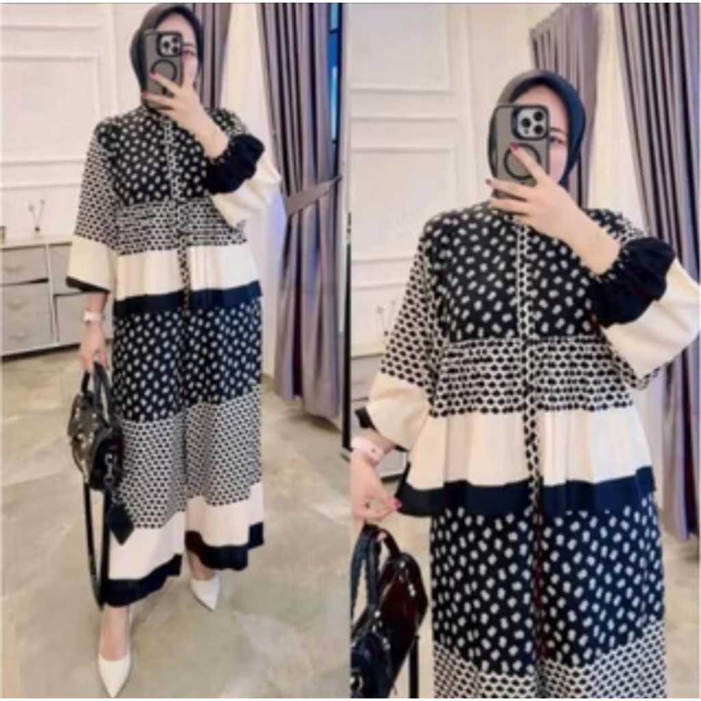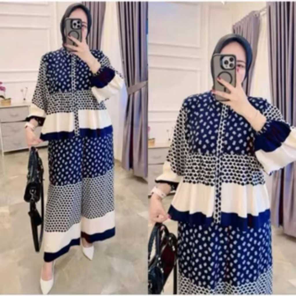 OBRAL Setelan Rayon Motif Polka Oneset Baju & Celana Kulot