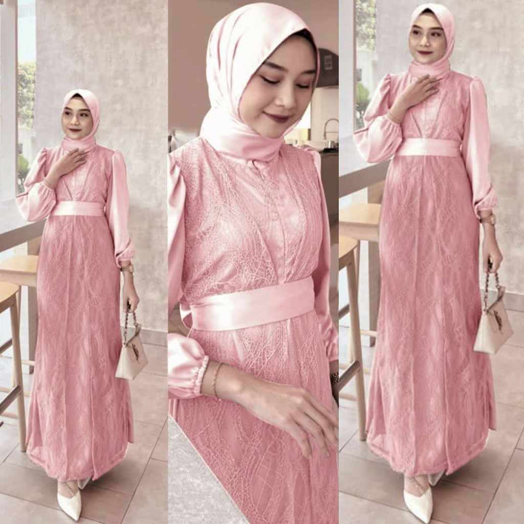 Dress Brukat Florenza Busui Gamis Mewah Premium Elegan Syari Kondangan Pesta Trendi Terbaru
