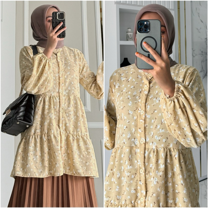 NAVA blouse by ZALFA OUTFIT /Baju Atasan Wanita muslim blouse kerja kuliah basic crincle motif premium lengan panjang karet