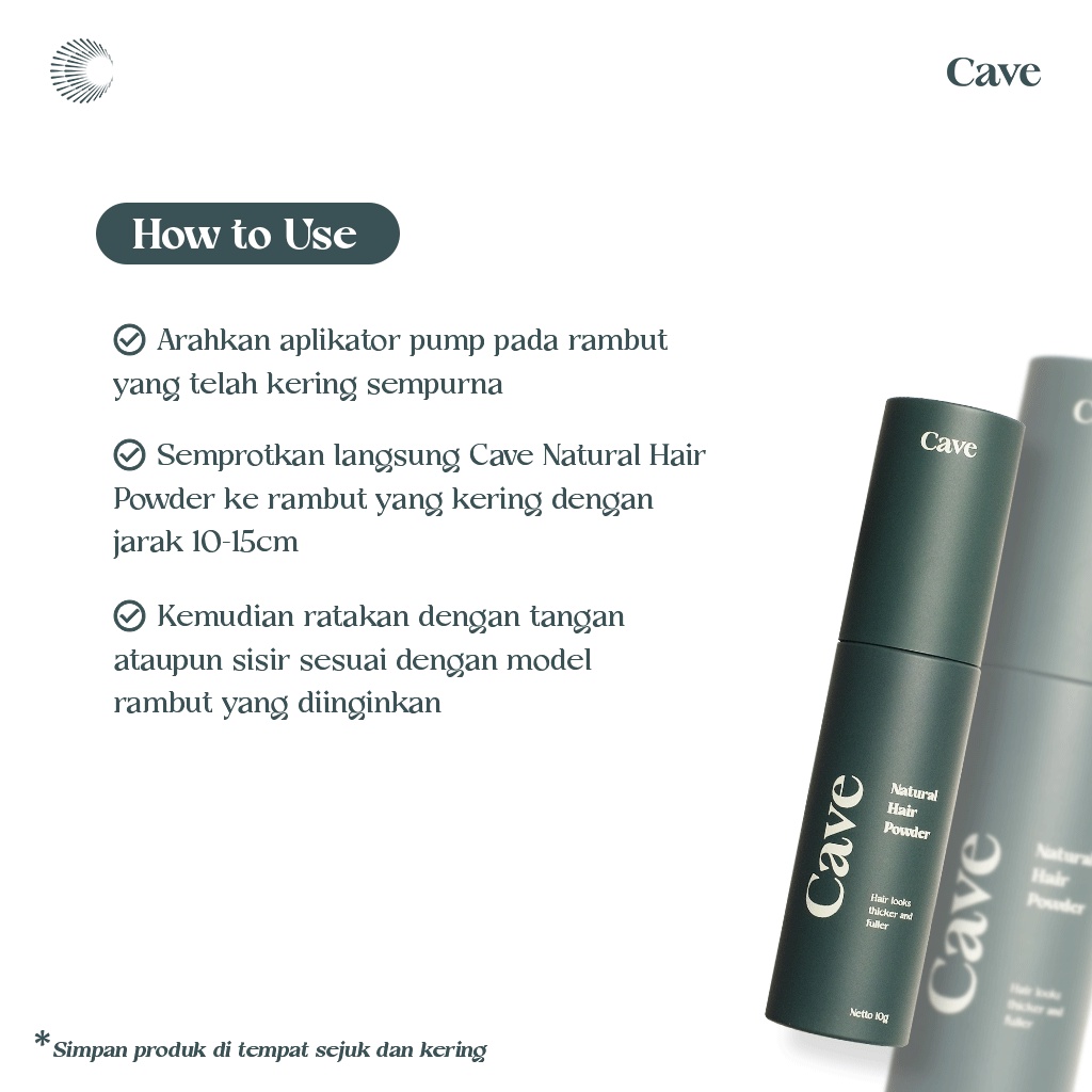 Cave Natural Hair Powder 10 gr - Bedak Styling Rambut Pria Membuat Bervolume Tebal & Anti Lepek