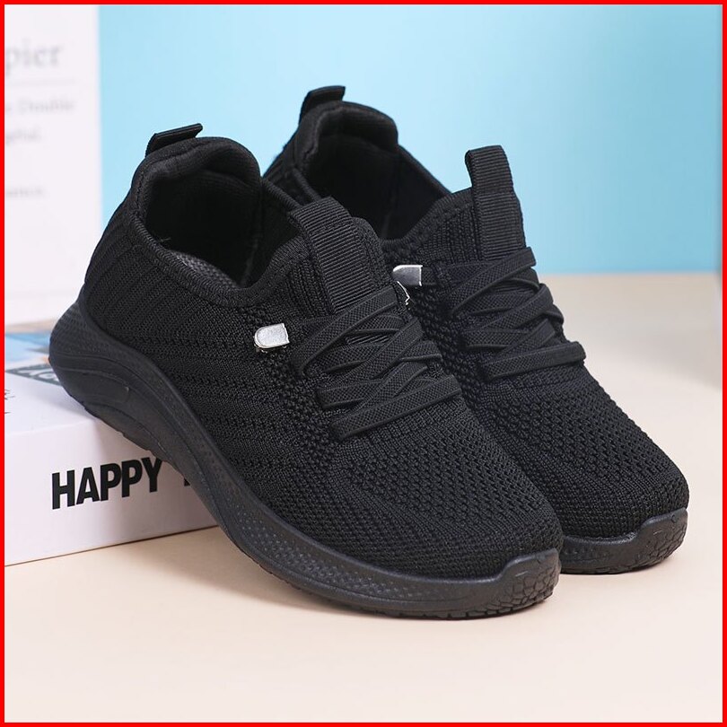 Collin Sepatu Sekolah Anak Hitam Slip On Rajut Sneakers Tali Mati Alas Hitam Putih - Tb331-k T