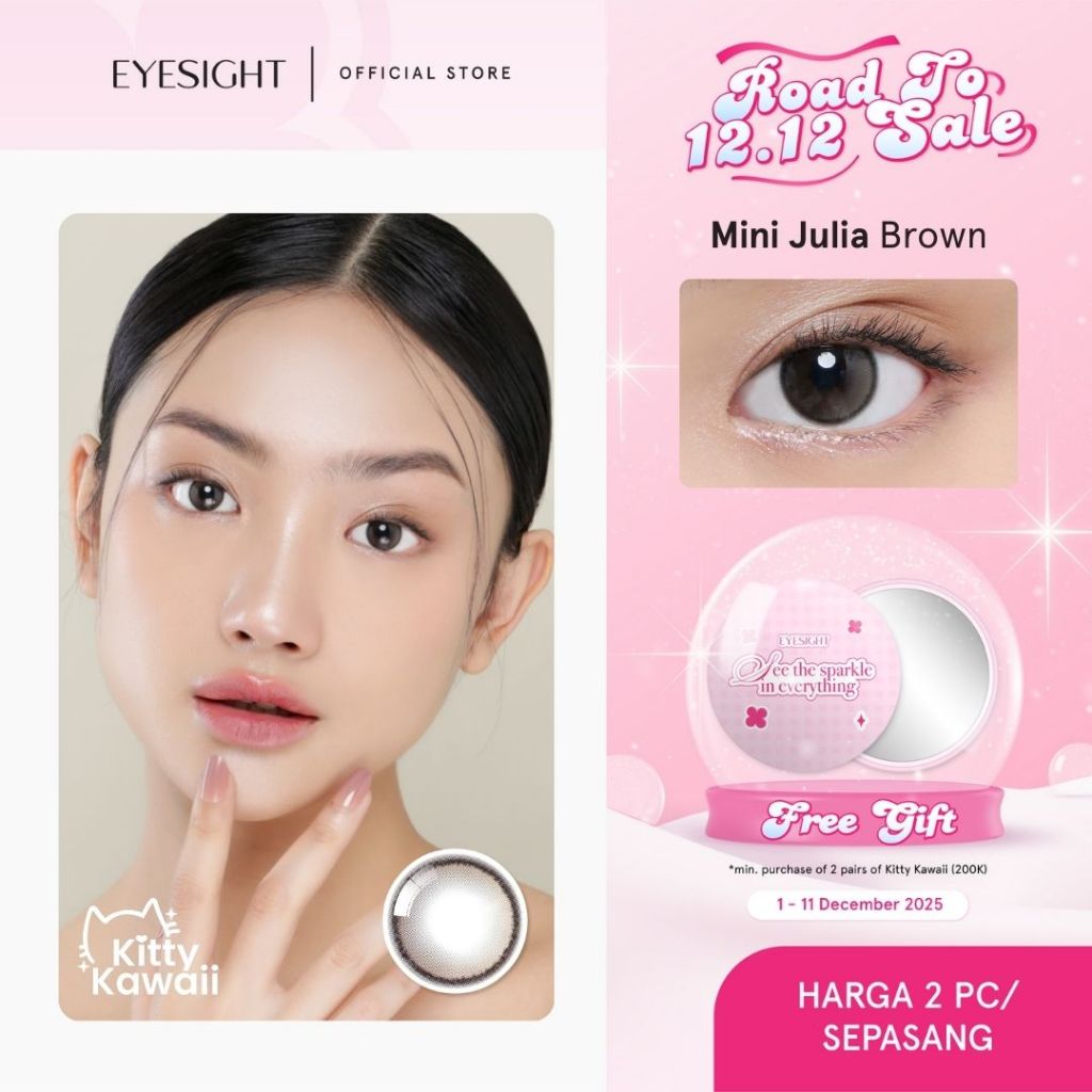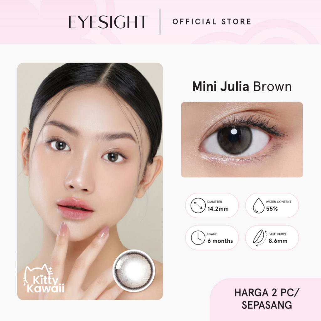 [BEST SELLER] EYESIGHT LENSES Softlens Kitty Kawaii Mini Julia Brown | Softlens Diameter 14.2mm Natural Efek Gradasi Coc