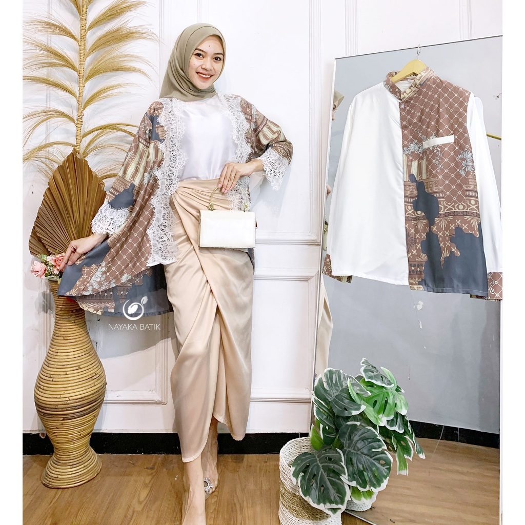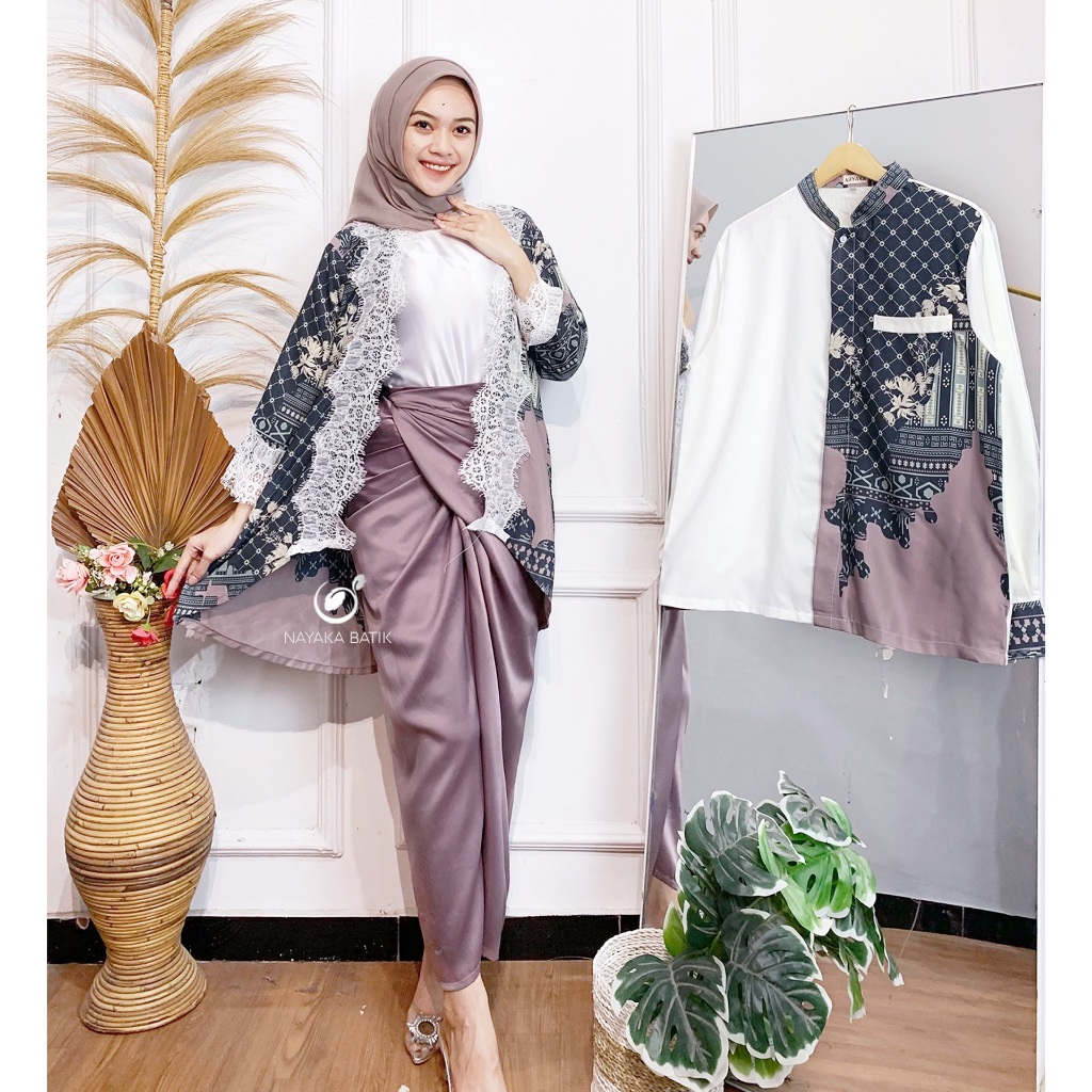 NAYAKA BATIK - Baju Couple Pasangan Damaris One Set 3 in 1 Modern Wanita Baju Kondangan Kekinian Batik Couple Kemeja Pri