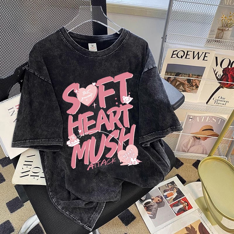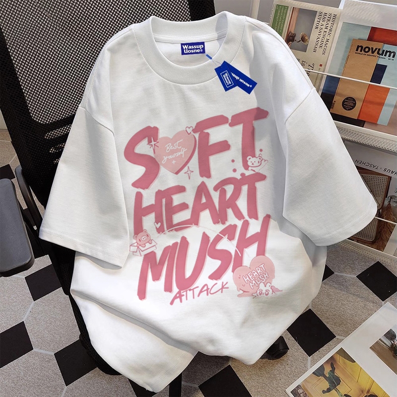 DSSTORY | Korean style Grafiti merah muda print Anti-Uv50+ T-shirt |Atasan Wanita| Kaos Wanita | Korea top Wanita | Atasan Wanita Terbaru 2025 | Kaos Cream |11.7