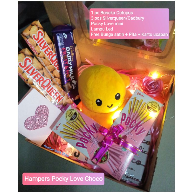 H. Pocky Love Choco, Hampers reguler, Hampers Ekonomis, 2 toblerone+1 SQ, Cadbry pop heart, SQ Bear, Royal Hampers 5 cklt, Susu ultra+tango