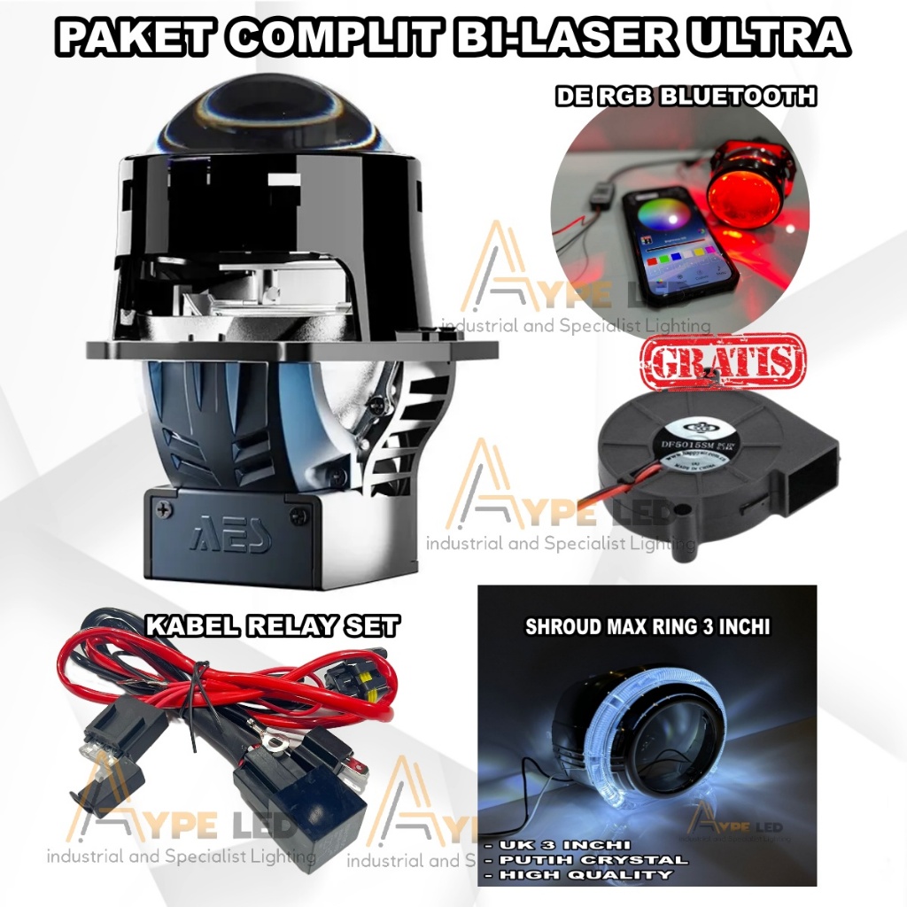Bi-Laser Projector AES Turbo Biled 3 inch Ultracooler Tir Technology 75 WATT Paket Complit Bi-Laser AES