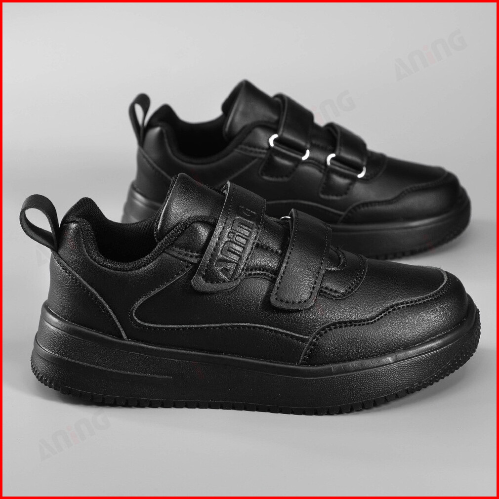 Aningboy-sepatu Anak Laki-laki Sepatu Sekolah Siswa Hitam Sepatu Olahraga Kasual Bahan Pu Kulit