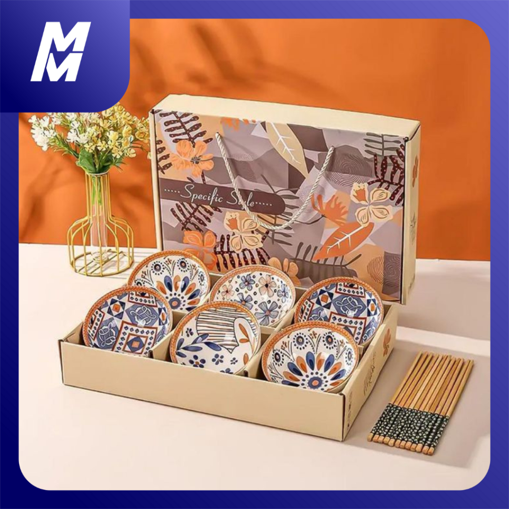Hampers Kado Mangkok Set Porcelain isi 4/6, Alat Makan Korea Jepang Keramik Free Sumpit Kemasan Box