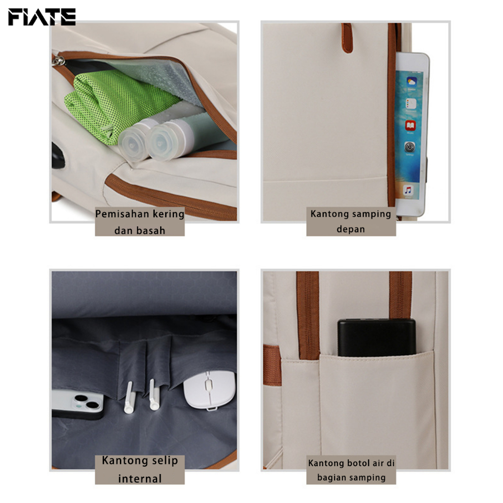 FLATE Tas Laptop 15 inch Waterproof Tas Ransel Sekolah Wanita Outdoor Travel Backpack