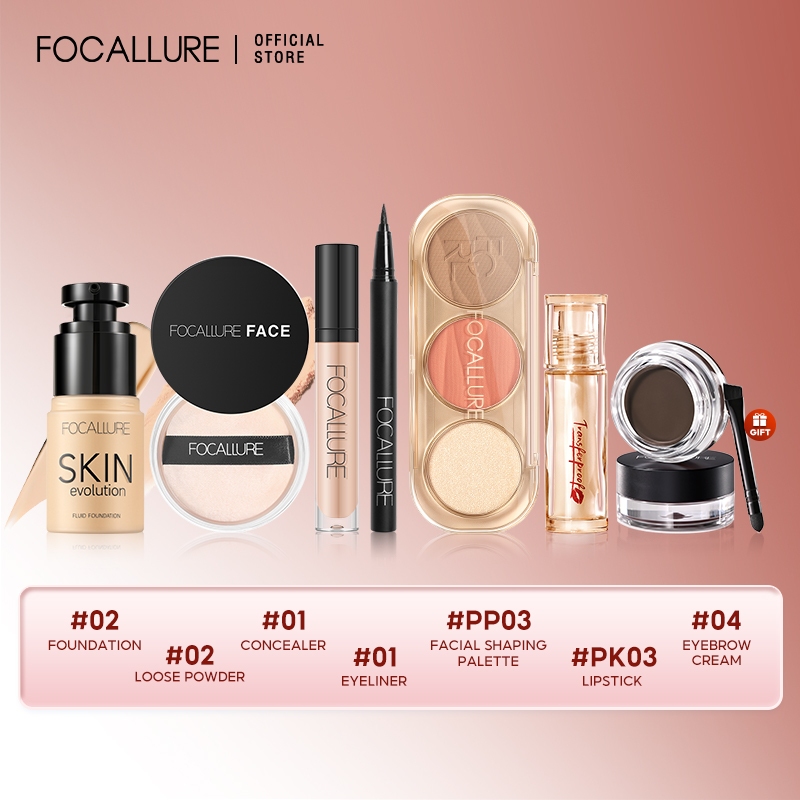[Hot Bundle]FOCALLURE Makeup Set 3/5/7PCS Bundle Lip tint Eyeshadow Foundation Eyeliner Blush Powder Mascara