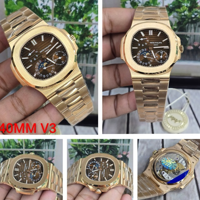JAM TANGAN PRIA/COWOK PATEK PHILIPPE 5712R ROSE BROWN PPF V3 40mm AUTOMATIC SWISS CLONE #Jamtanganpria #Jamtangancow