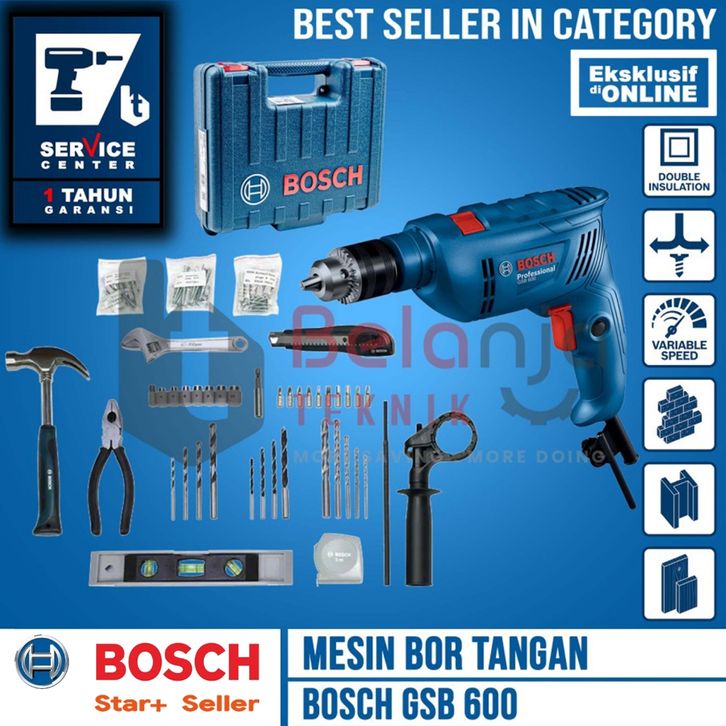 Bosch Mesin Bor Beton Set Perkakas GSB 600 Impact Drill 600 W 100 PCS