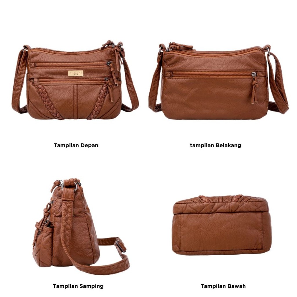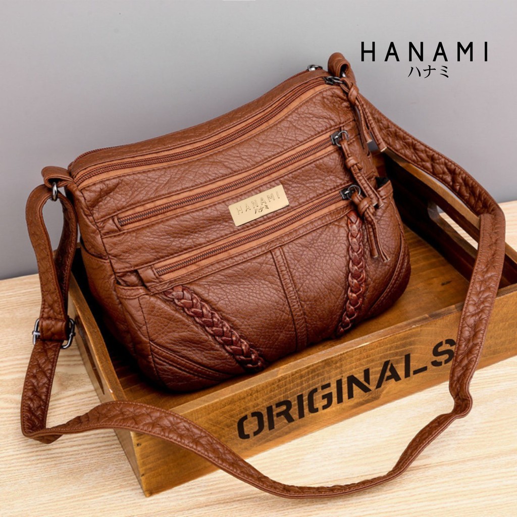 HANAMI Tas Selempang Wanita Kulit Premium Shoulder Sling Bag Korea Cewek Coklat Hillmont TA383B7