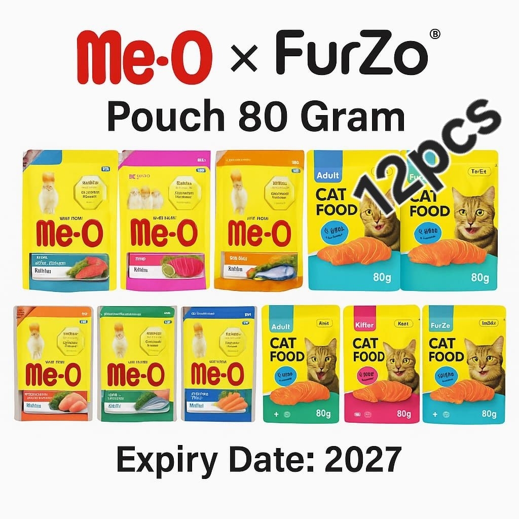 Meo,Furzo ,12pcs 80g, makanan kucing basah Pouch 80gr Saset,good