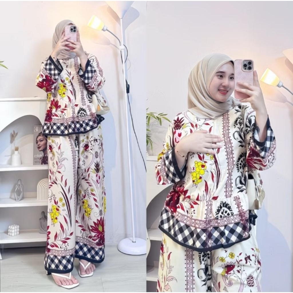 VIRAL One Set Wanita Kekinian Full Kancing Bahan Rayon Premium Super Jumbo Terbaru 2025
