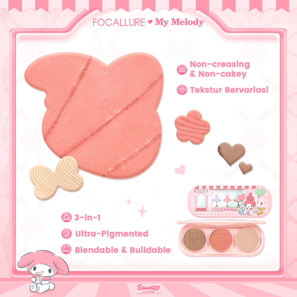 FOCALLURE X Sanrio 2PCS Face Set Foundation Powder 3IN1 Palette Blushon Contour