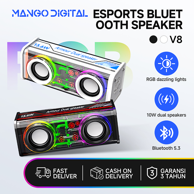 Speaker Bluetooth Cyberpunk V8 Transparan Double Subwoofer Rgb Led 136w