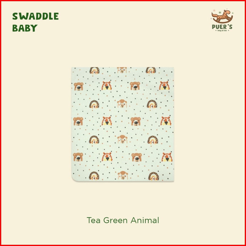 Puers Bedong Bayi Swaddle Baby Tea Green Animal