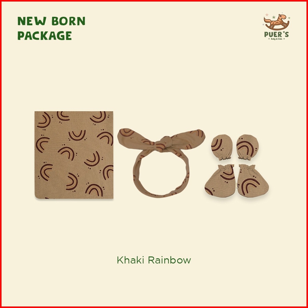 Puers Newborn Package Paket Bedong Bayi Swaddle Set Khaki Rainbow