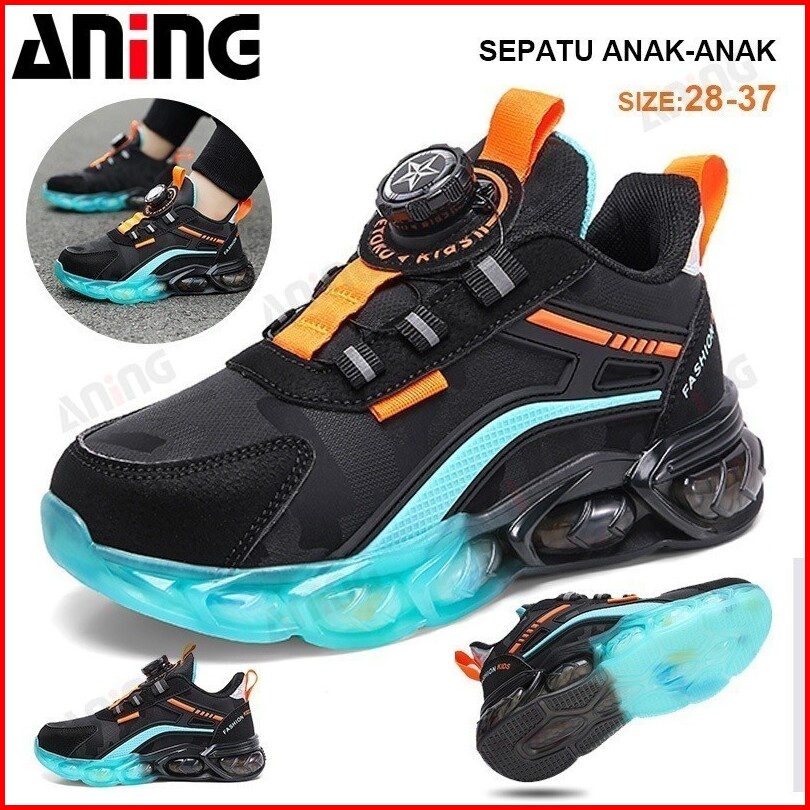 Aning Aningboy-sepatu Sekolah Anak Laki Laki Sepatu Olahraga Lari Warna Hitam Sol Lembut Sepatu Sneakers Dan Nyaman Fash