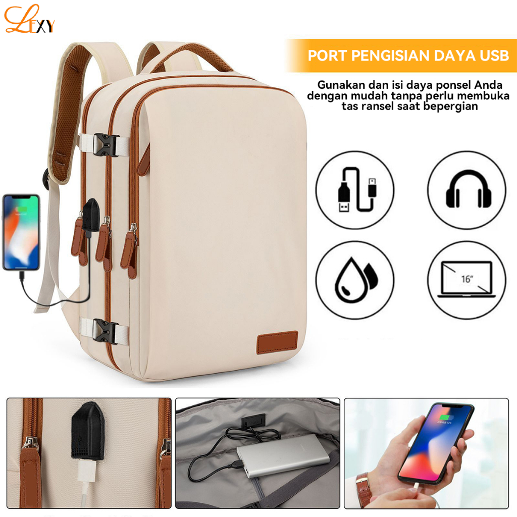 LEXY Tas Pergi Wanita Multifungsi Tahan Air Ransel Fashion Dengan Tas Sepatu Terpisah 35L/16 inch