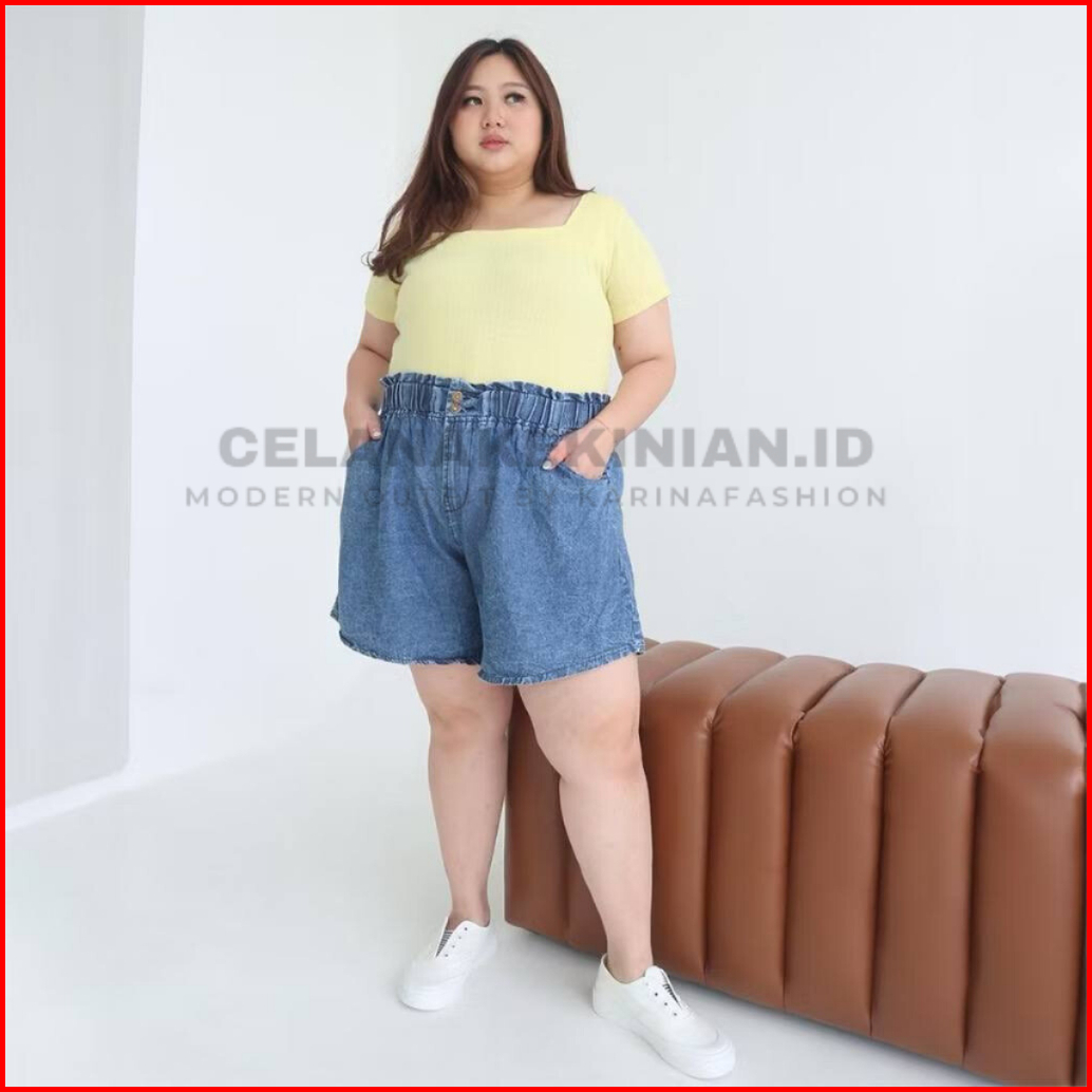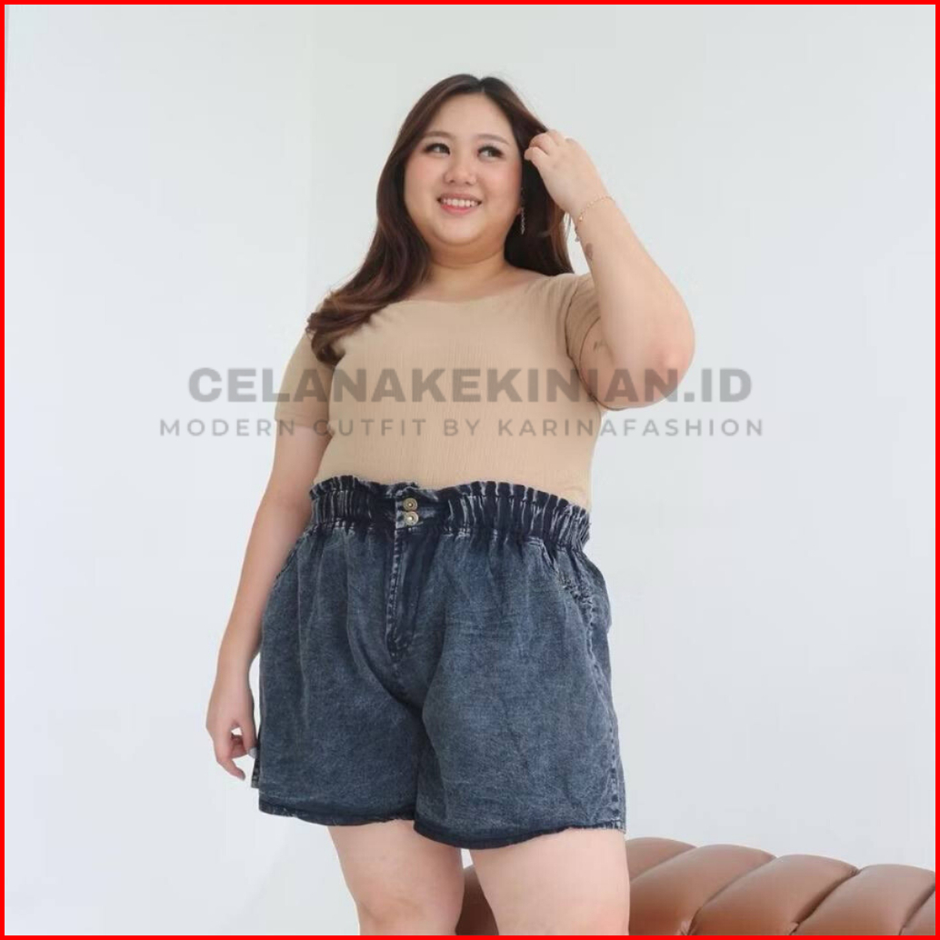 Celana Pendek Wanita Santai Super Jumbo Kekinian Hotpants Jeans Bigsize Pinggang Karet Elastis Bahan Halus Dan Adem