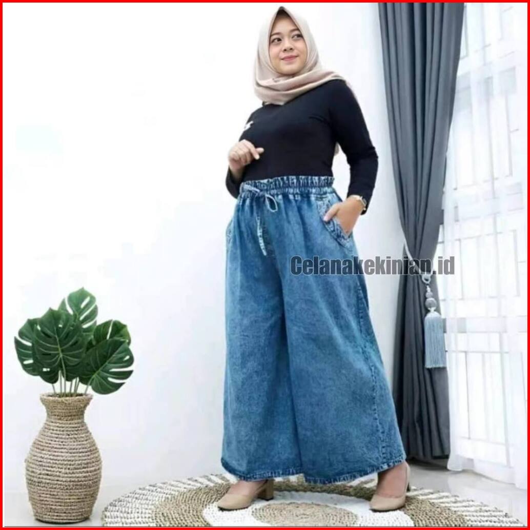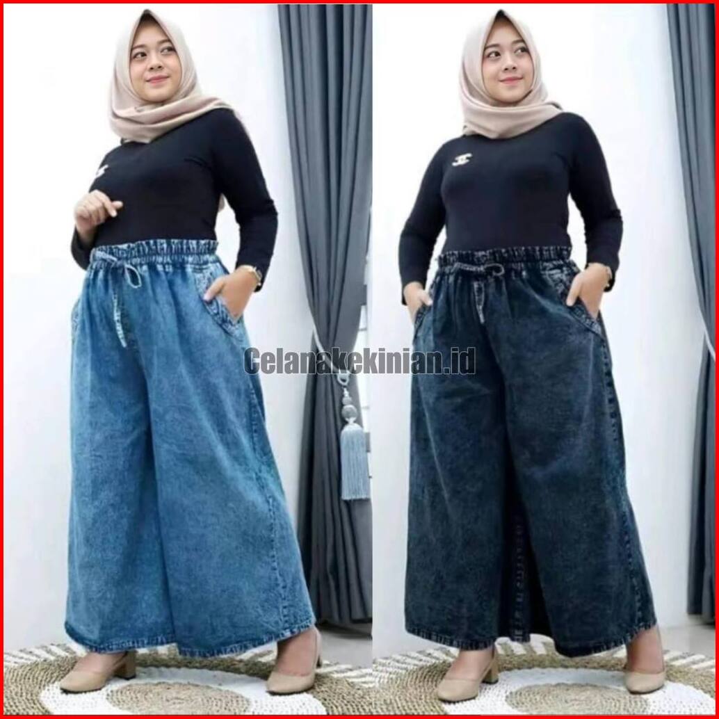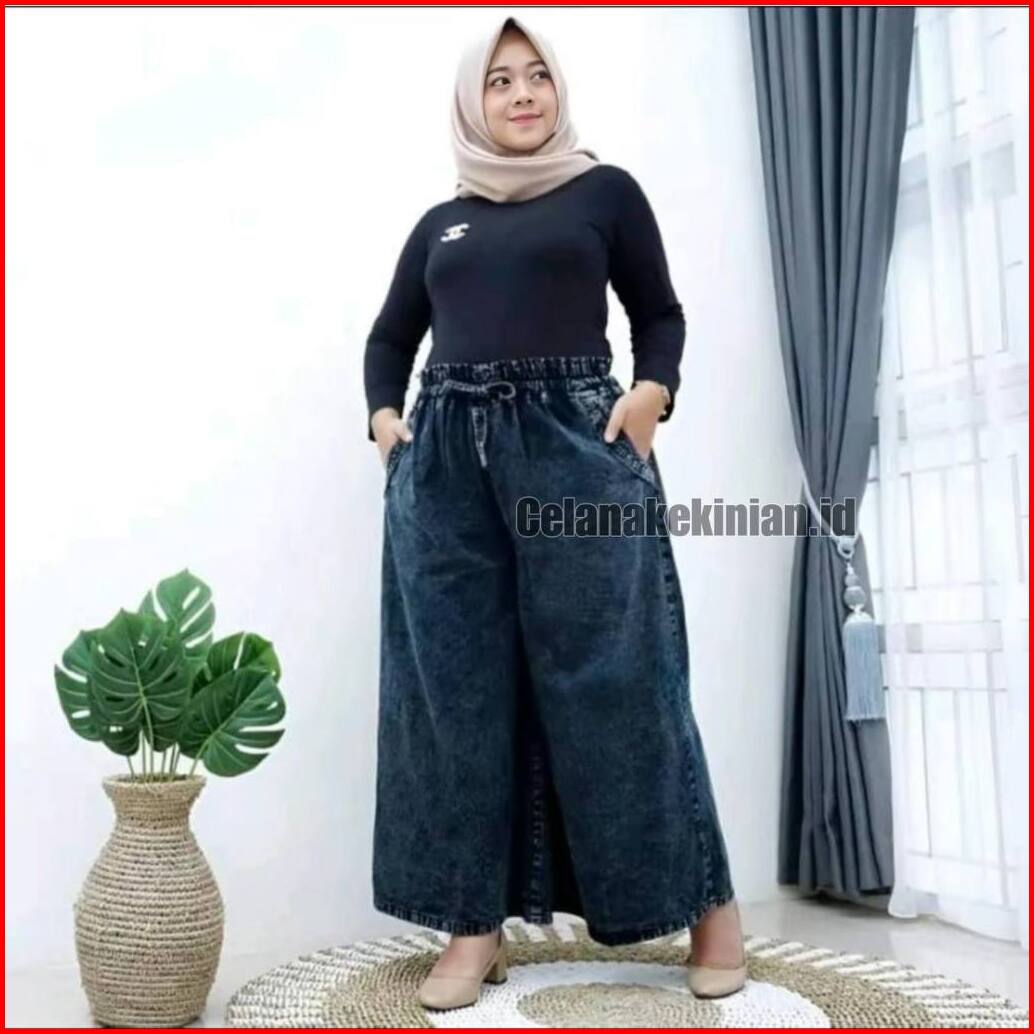 Celana Panjang Jeans Kulot Snow Black Snow Blue Wanita Celana Bawahan Haighwaist Kulot Snow Panjang Cewek