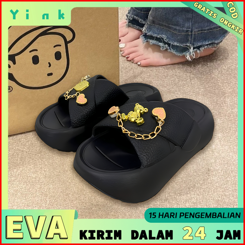 Yink Sandal Wanita Wedges Tali Tinggi 5cm Korea Style Terbaru Sendal Wanita Elegan Kekinian Ootd Casual Perempuan Cewek