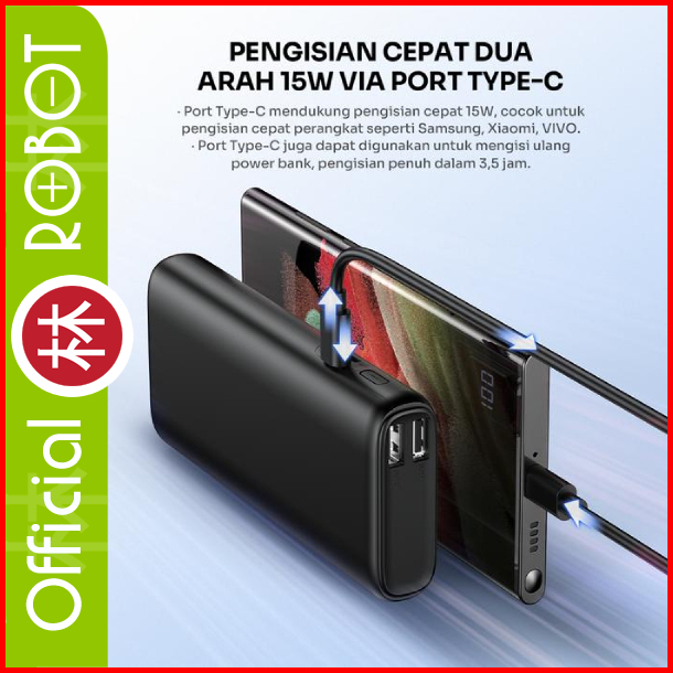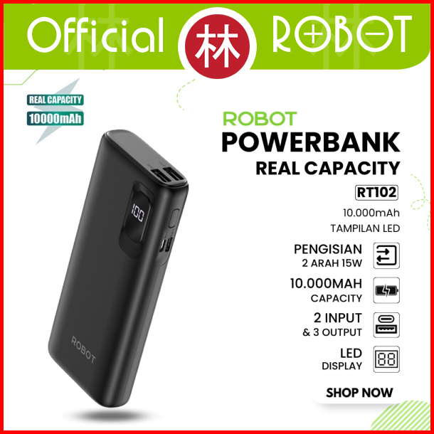 Robot Rt102 Powerbank 10000mah 15w 5v 3a Max Dual Input Port Usb-c Micro Usb Led Display