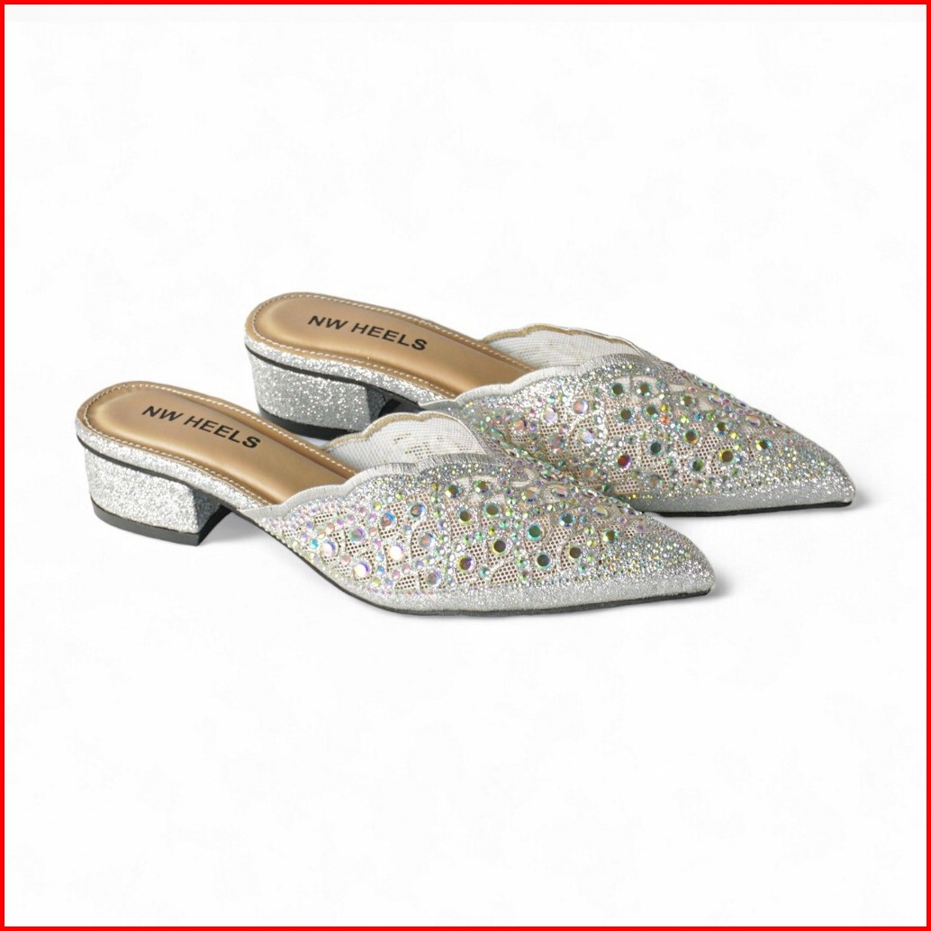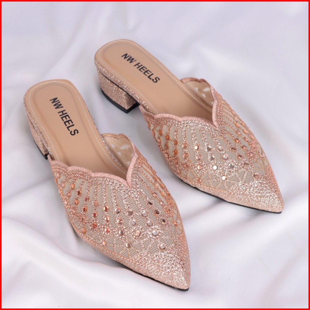 Nw Heels - Sandal Diamond Wanita Heels 3 Cm Mules Big Size Size Jumbo 41 42 43 44 45
