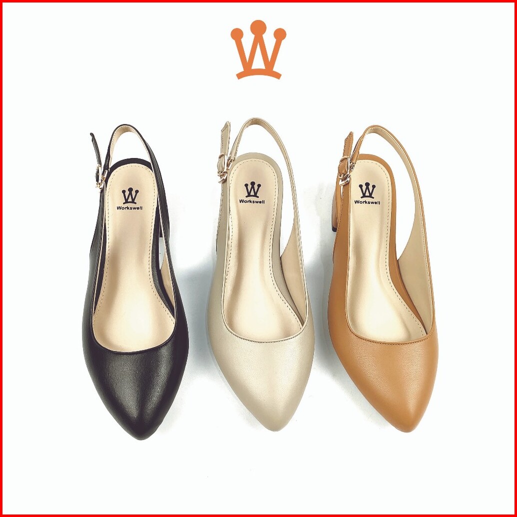 Workswell Megumi Mules Sling Back Wanita Hak 4 Cm