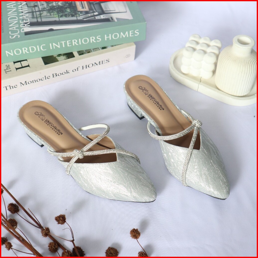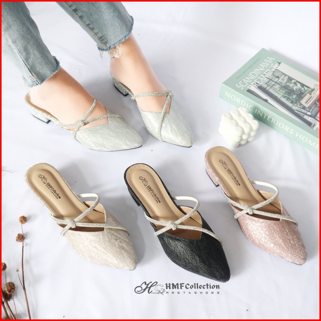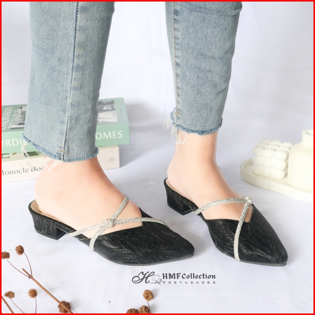Hmf Yarima Sepatu Hak Mules Wanita Glitter 3 Cm Mt44