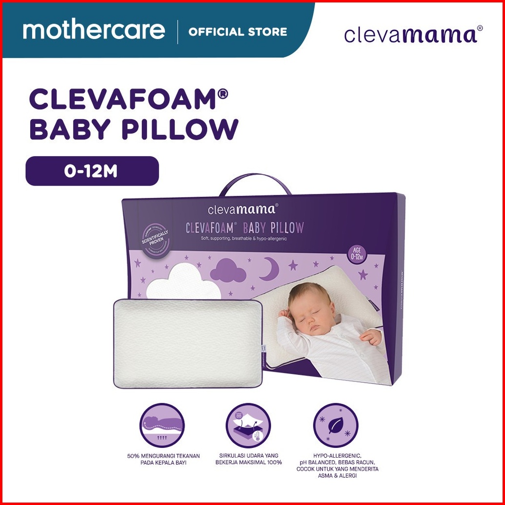 Clevamama Baby Clevafoam Baby Pillow - Bantal Bayi Newborn Anti Peyang 0-12 Bulan