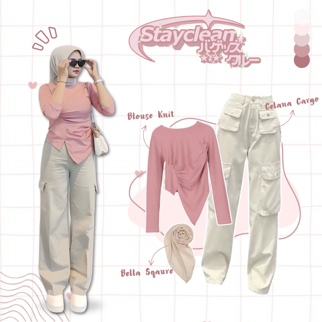 Blouse, Blouse + Hijab, Blouse + Celana, Oneset 3in1