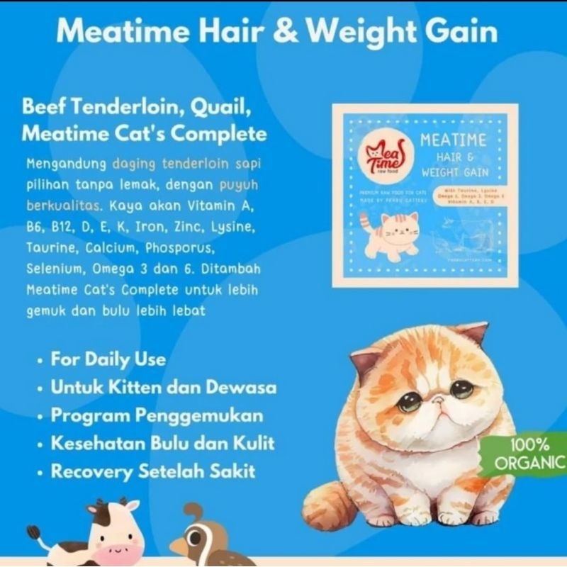 Meatime, makanan kucing / rawfood hair and weight gain + + vit bulu dan penambah nafsu makan