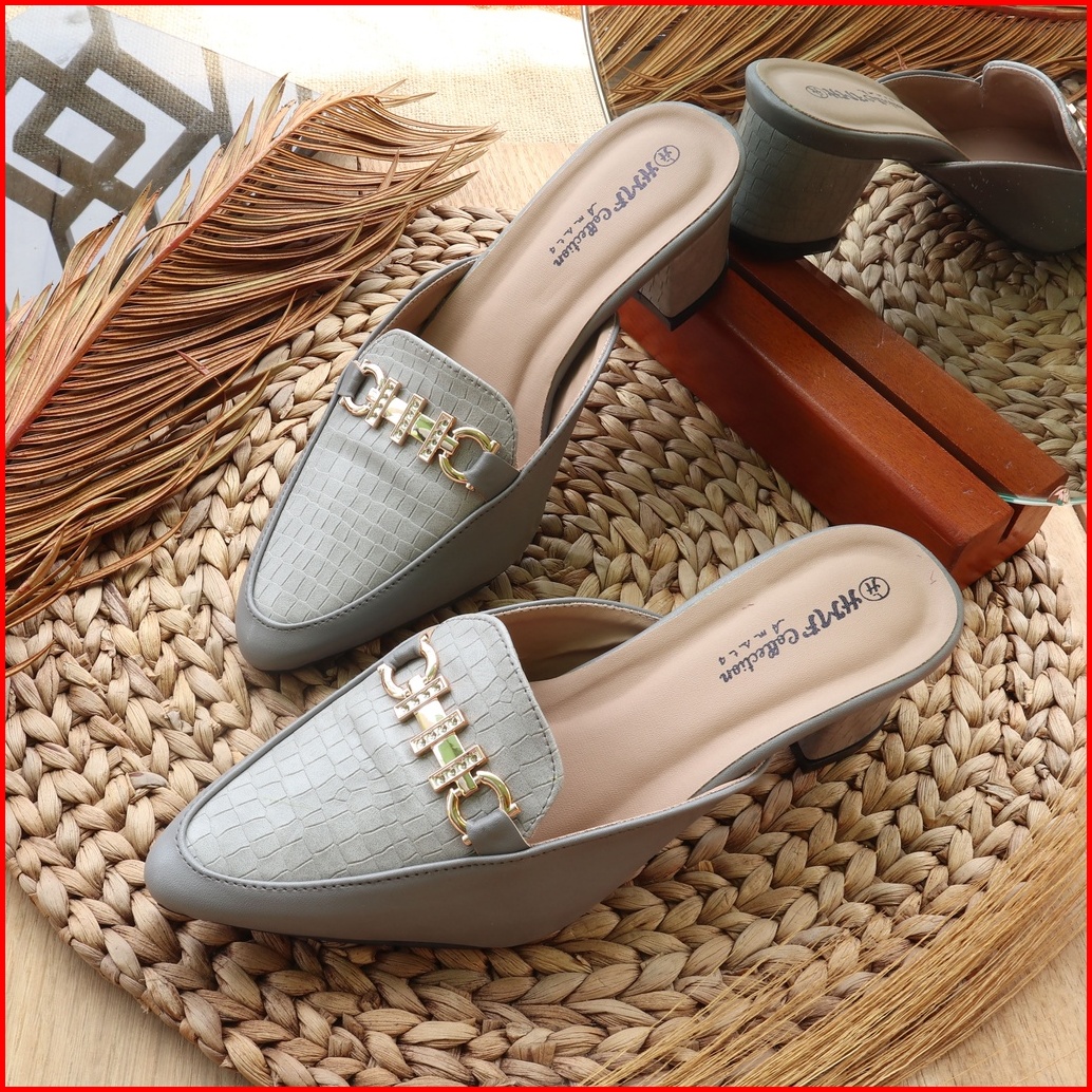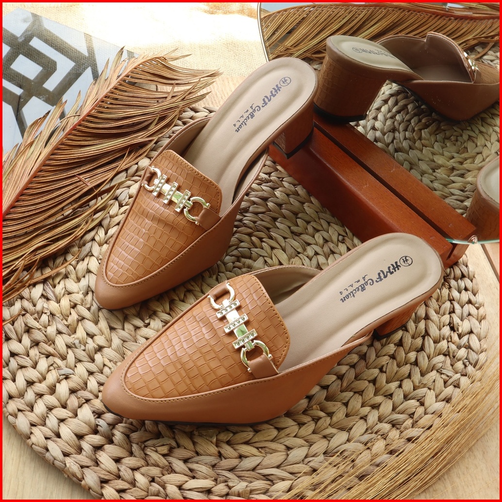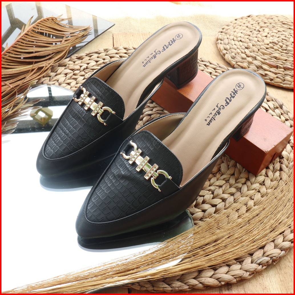 Hmf Triny Heels Mule Wanita Kulit Sintetis Rd12