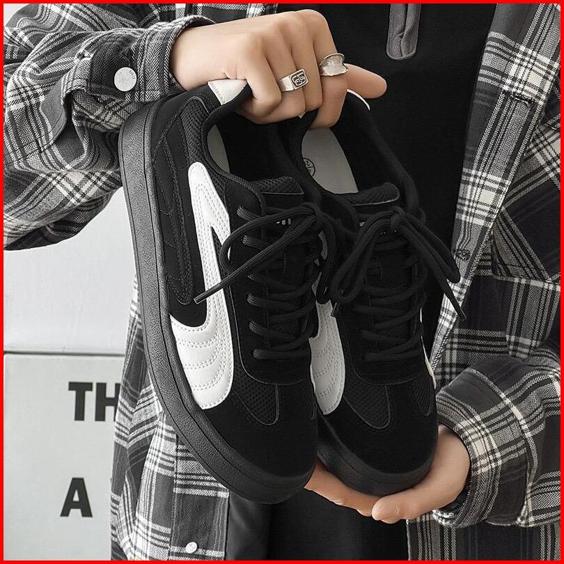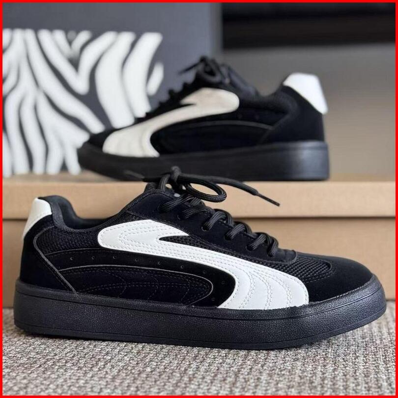 Luckyfanstore - Sepatu Priva Hitam Sneakers Kasual Sporty Stylish Pria Wanita Sepatu Sekolah Nyaman - E37