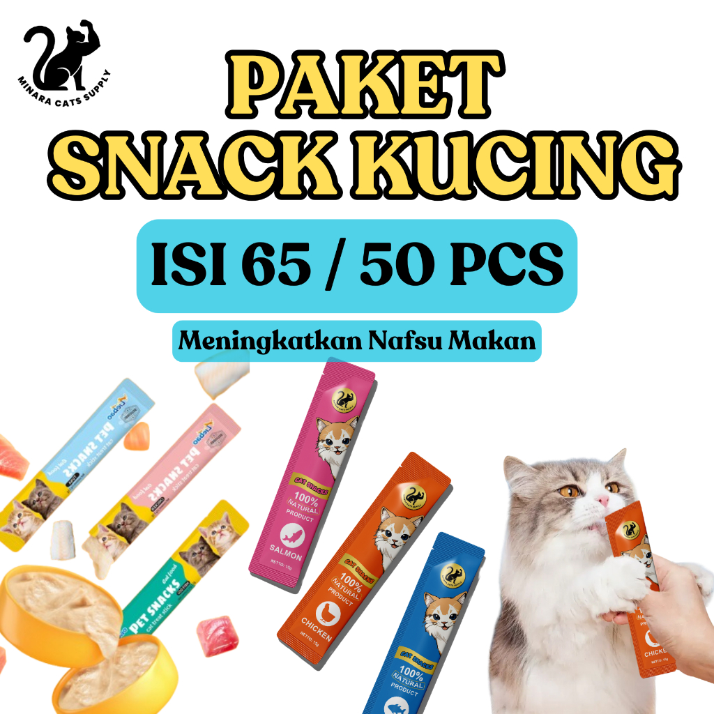 Snack Kucing Paket 65 & 50 pcs 1KG | Makanan Kucing | Cemilan Kucing | Wetfood Kucing | Paket Snack Kucing | Dryfood Kuc
