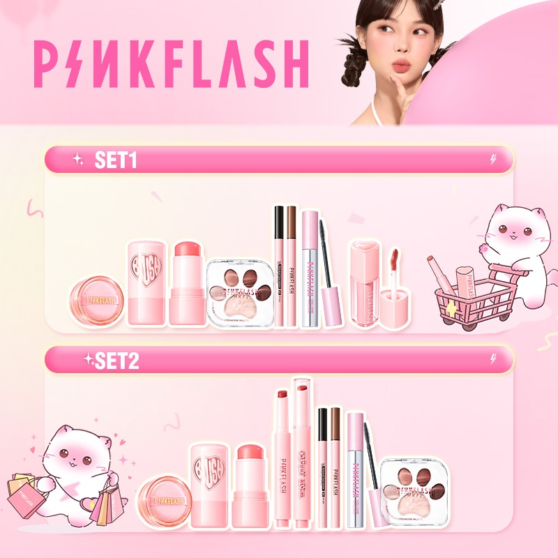 [11.11 LAUNCH SPECIAL]PINKFLASH 7PCS Makeup Set Eyeshadow Palette Liquid Eyeliner Volume Mascara Loose Powder Bubble Glo