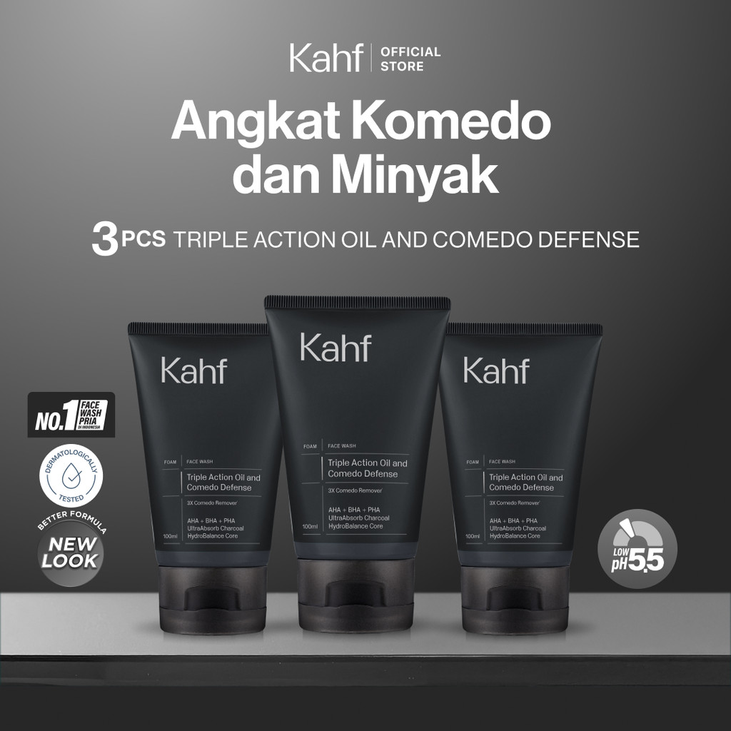 [KAHF BUNDLE 3IN1 PAKET FACIAL WASH] Triple Pack Face Wash 100 ml - Sabun Cuci Muka Pria Brightening, Acne, Oily, Comedo