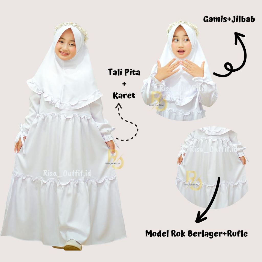 Gamis Muslim Anak Perempuan - Gamis Putih Manasik Haji - Gamis Anak Warna Putih - Gamis Anak Set Jilbab - Hana Kids Set