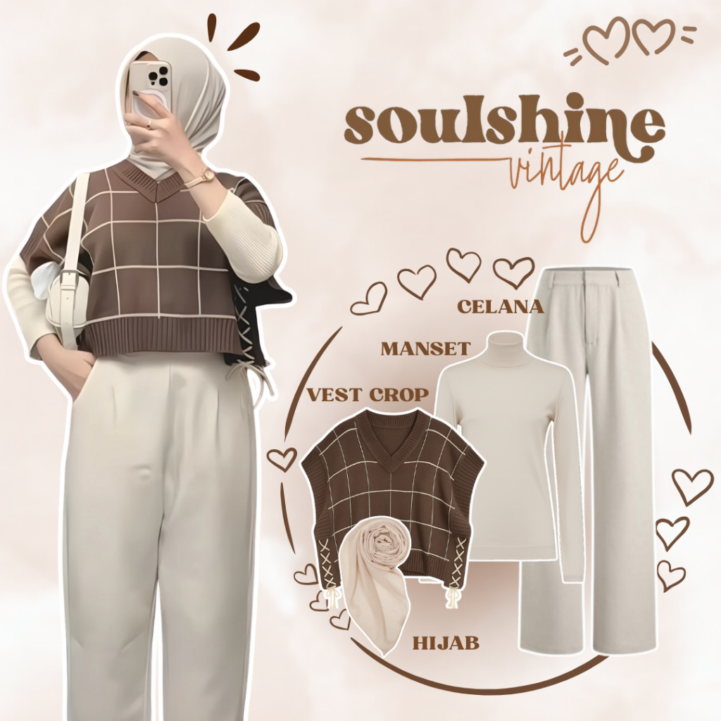 Outfit Wanita Kekinian Set Ootd Hijab (JENNA VEST CROP | CELANA JENNIE | INNER MANSET | HIJAB) Korean Style 3IN1 - SW026