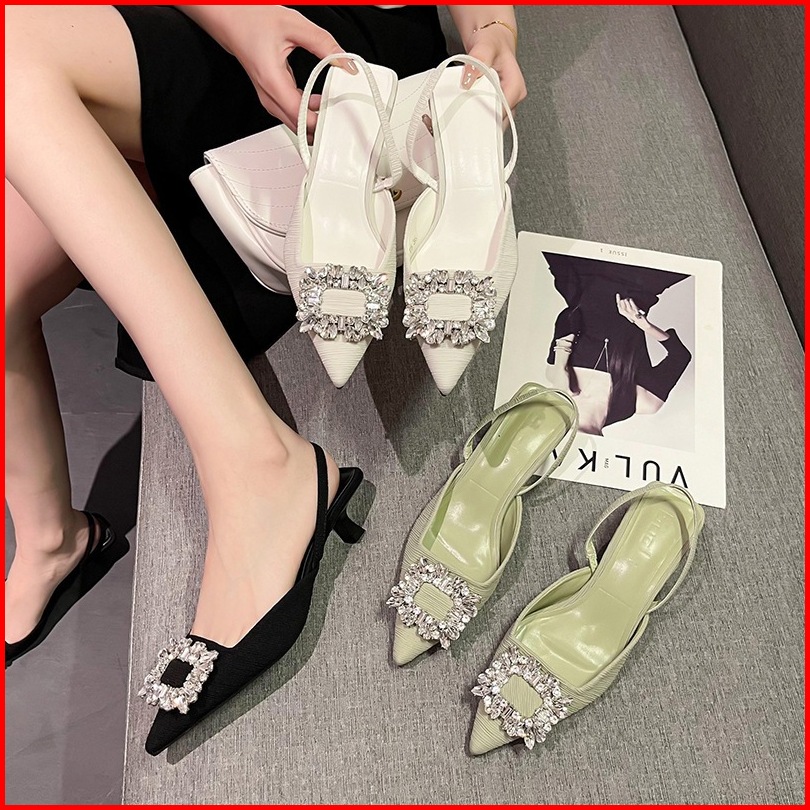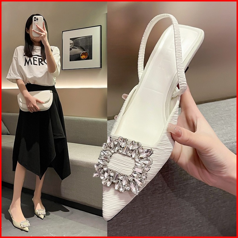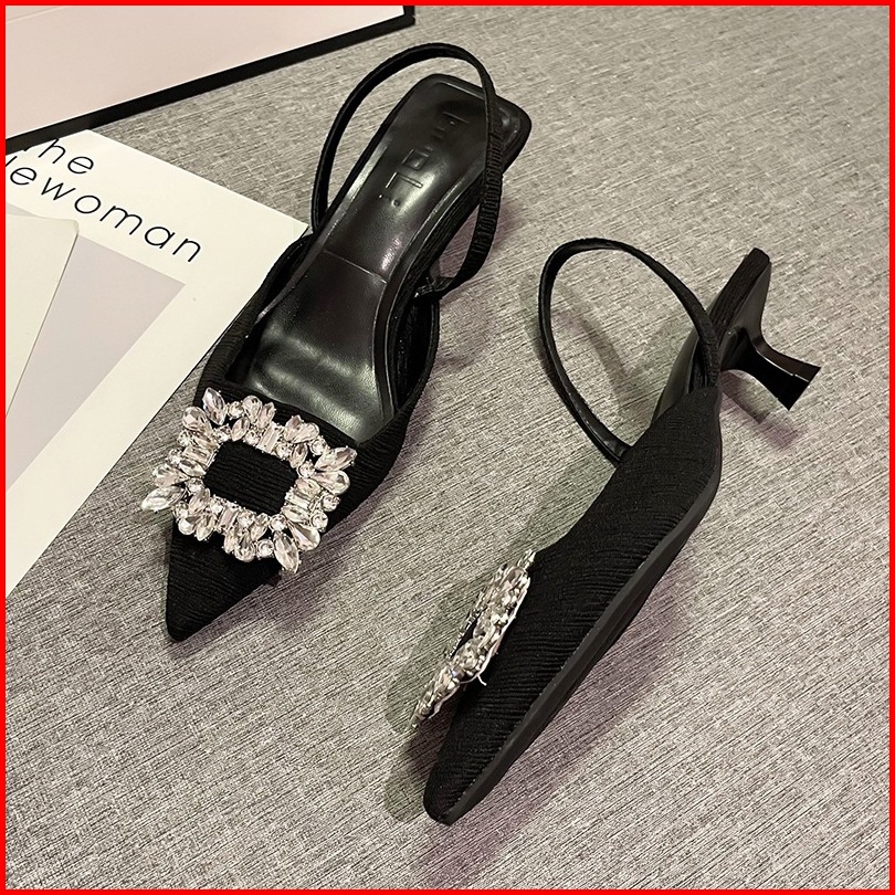 Sandal Wanita Sepatu Hak Tinggi Baru Berlian Imitasi Runcing Sepatu Tunggal Tumit Tinggi 4cm