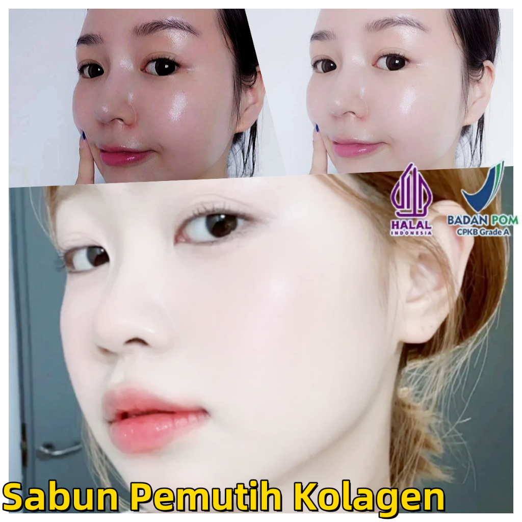 Sabun Pemutih Kolagen 85g Sabun Collagen Pemutih Anti-Aging Whitening Collagen Soap Cepat Wajah Jerawat Tungau Pembersih