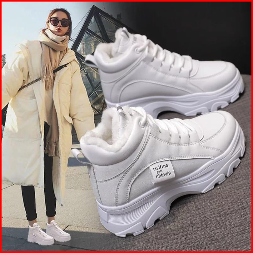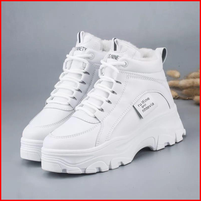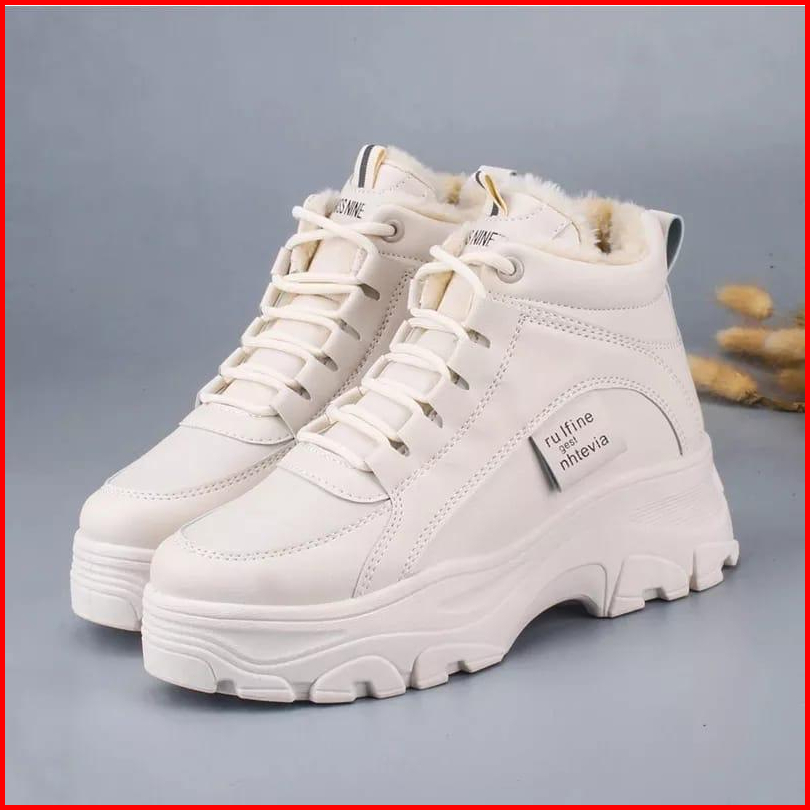 Sr - Sneakers Boots Kasual Wanita High Top Sepatu Wanita Hangat Berbulu Missninety